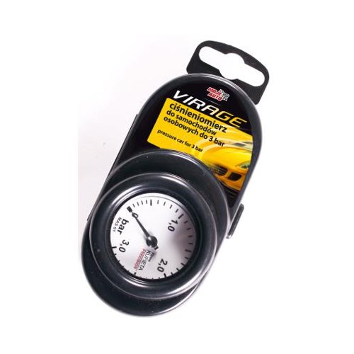 Solidny i dokładny ciśnieniomierz z tarczą zegarową. Maksymalny pomiar ciśnienia do 3 bar. Niezbędne wyposażenie każdego samochodu.
