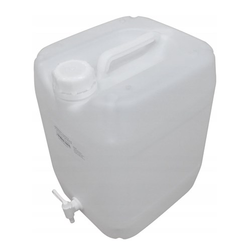 Kanister na wodę, wyposażony w kranik i plastikowy zawór. Pojemność 10L. Wygodny uchwyt.