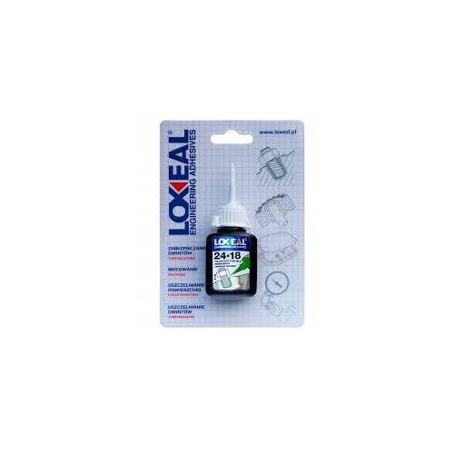 LOXEAL 24-18 jest jednoskładnikowym anaerobowym i tiksotropowym środkiem do zabezpieczania gwintów średniej wielkości przed samoczynnym luzowaniem się i odkręcaniem, przeciekami i korozją. Utwardzanie produktu następuje po odcięciu dopływu powietrza w gwincie. Jest szczególnie przydatny tam gdzie istotny jest łatwy demontaż jak również występują niewielkie obciążenia mechaniczne gwintu.