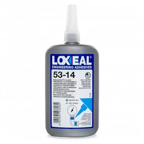 LOXEAL 53-14 jest jednoskładnikowym anaerobowym środkiem średniej wytrzymałości i niskiej lepkości do uszczelniania gwintów stożkowo-cylindrycznych, średnich rozmiarów elementów hydraulicznych i pneumatycznych. Produkt działa również antykorozyjnie. Utwardzanie produktu następuje po odcięciu dopływu powietrza w gwincie. Produkt znajduje szczególne zastosowanie tam, gdzie wymagany jest utrudniony demontaż oraz wymagane jest silne dociągnięcie skręcanych elementów w uszczelnianych instalacjach.