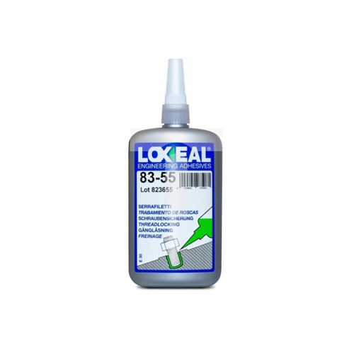 LOXEAL 83-55 jest jednoskładnikowym anaerobowym i tiksotropowym środkiem do zabezpieczania gwintów średniej wielkości przed samoczynnym luzowaniem się i odkręcaniem, przeciekami i korozją. Utwardzanie produktu następuje po odcięciu dopływu powietrza w szczelinie w gwincie. Jest szczególnie przydatny tam gdzie występują maksymalne obciążenia złącza gwintowego (układy napędowe, części konstrukcyjne, osadzanie śrub dwustronnych w połączeniach kołnierzowych) oraz na powierzchniach mniej aktywnych chemicznie (lekko zaolejonych).