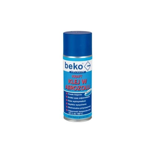 beko Kraft jest rozpuszczalnikowym klejem w aerozolu o wysokiej natychmiastowej sile spajania. Powierzchnie klejone muszą być odtłuszczone, suche, czyste i zdolne do przenoszenia obciążeń. Do czyszczenia można użyć beko ALLCLEAN. Poprzez obracanie głowicy jest możliwa zmiana szerokości strumienia kleju. Przed użyciem wstrząsnąć pojemnikiem. Klej nanieść na jedną lub obie klejone powierzchnie natryskując z odległości ok. 20-25 cm. W zależności od klejonego materiału pozostawić do odparowania na 5 do 15 minut (po dotknięciu palcem klej musi być suchy, ale jeszcze lekko klejący). Klejone elementy połączyć ze sobą wywierając znaczną siłę nacisku (krótkotrwale).