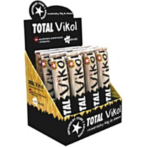 TOTAL VIKOL to uniwersalny klej do drewna, który po wyschnięciu staje się przezroczysty i elastyczny. Nie brudzi powierzchni, można go używać na jasnych materiałach.
