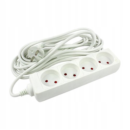 z czterokrotnym gniazdem wtyczkowym 2P (10A) z przesłonami i przewodem OMY 2x1mm