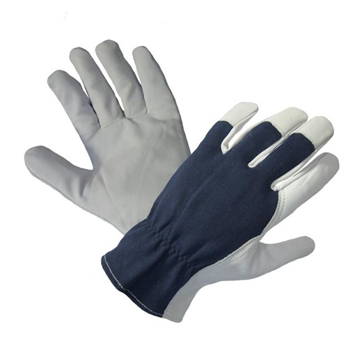 Strona grzbietowa z bawełnianego dżerseju, strona chwytna dłoni, kciuk i końcówki palców ze skóry licowej koziej. Od wewnątrz ocieplone miękką tkaniną polarową.