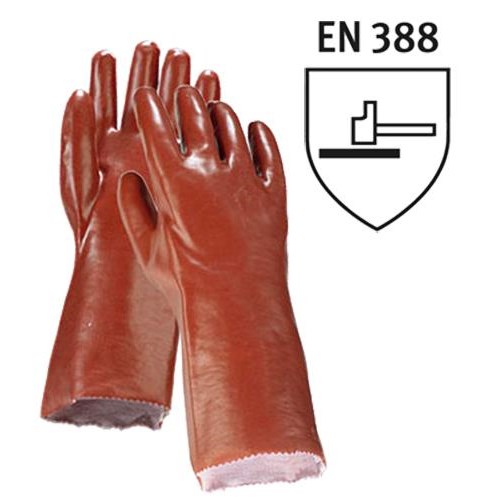 Rękawica wykonana z czerwonego PCV. Powierzchnia gładka. Długość całkowita 35cm