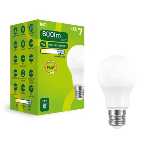 Led A60 E27 7W bulb 600lm 6500K INQ