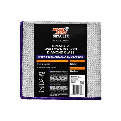 Mikrofibra o waflowej strukturze doczyszczenia powierzchni szklanych.Podczas pracy na czyszczonej powierzchninie pozostawia włókien ani smug, dziękiczemu czyszczenie szyb i luster stajesię bardzo proste i mniej czasochłonne.Do użycia na sucho i mokro. Zaleca siępranie mikrofibry w temperaturze do 40°Cbez użycia płynów zmiękczającychi wybielaczy oraz w podobnych kolorach.Nie suszyć na grzejnikach i nie prasować.Suszyć w trybie delikatnym.