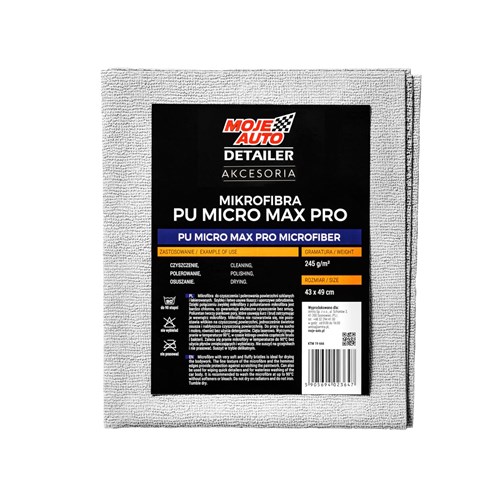 PUMICRO MAX PRO to mikrofibra do czyszczenia i osuszania powierzchni na mokro i wilgotno. Charakteryzuje się unikalnym splotem włókien a jej powierzchnia pokryta jest specjalną warstwą poliuretanu. Zatrzymuje 40 razy mniej brudu podczas płukania niż inne mikrofibry. Uwalnia o 50% mniej wody podczas czyszczenia. Doskonale zbiera zanieczyszczenia, w tym trudne plamy. Nie pozostawia smug ani włókien na czyszczonych powierzchniach. Jest bardzo chłonna, co zapewnia skuteczne czyszczenie. Może być używana na sucho i mokro, również bez detergentów. Wytrzymuje kilkaset cykli prania i można ją prać do 90°C. Zaleca się pranie bez zmiękczaczy i wybielaczy oraz suszenie w trybie delikatnym.