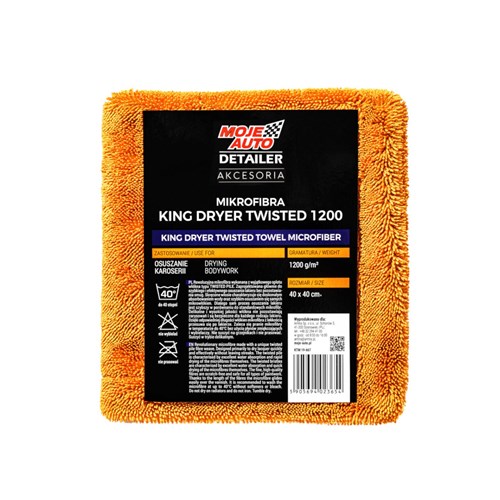 Rewolucyjna mikrofibra wykonana z wyjątkowego splotu włókna typu TWISTED PILE. Zaprojektowana głównie do szybkiego i efektywnego osuszania lakieru bez pozostawiania smug. Skręcone włosie charakteryzuje się doskonałym absorbowaniem wody oraz szybkim osuszaniem się samych mikrowłókien. Dlatego sam proces osuszania lakieru jest szybszy w porównaniu do standardowych mikrofibr. Delikatne i wysokiej jakości włókna nie pozostawiają zarysowań i są bezpieczne dla każdego rodzaju lakieru. Dzięki odpowiedniej długości włókien mikrofibra z lekkością przesuwa się po lakierze. Zaleca się pranie mikrofibry w temperaturze do 40°C bez użycia płynów zmiękczających i wybielaczy. Nie suszyć na grzejnikach i nie prasować. Suszyć w trybie delikatnym.