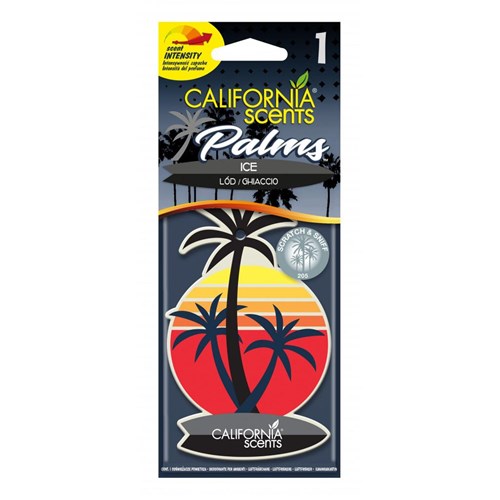 Papierowe zawieszki w kształcie palemek, do umieszczenia na lusterku wstecznym. Bardzo intensywny zapach oznaczony wyraźnym wskaźnikiem mocy aromatu na opakowaniu. O zapachu Ice.