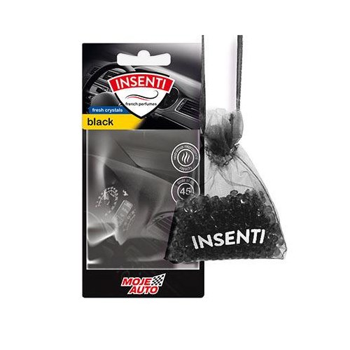 Odświeżacz powietrza do zastosowania w samochodzie, domu i biurze. W woreczku zamknięte są granulki nasączone wysokiej jakości perfumami, które stopniowo uwalniają unikalny zapach Black - eleganckich perfum męskich.