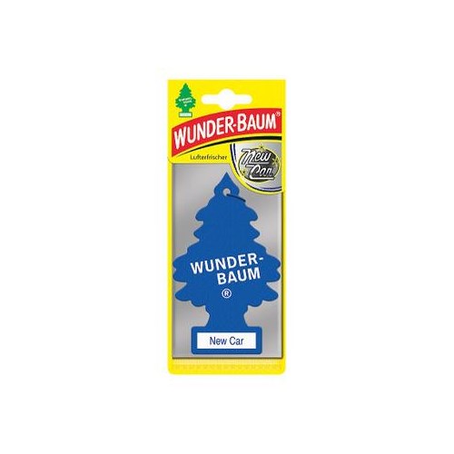 WUNDER-BAUM papierowy zapach samochodowy w kształcie choinki. Utrzymujący się do ośmiu tygodni aromat. Skutecznie neutralizujący nieprzyjemne zapachy np. dymu tytoniowego, wilgoci. Zapach "Nowy samochód"