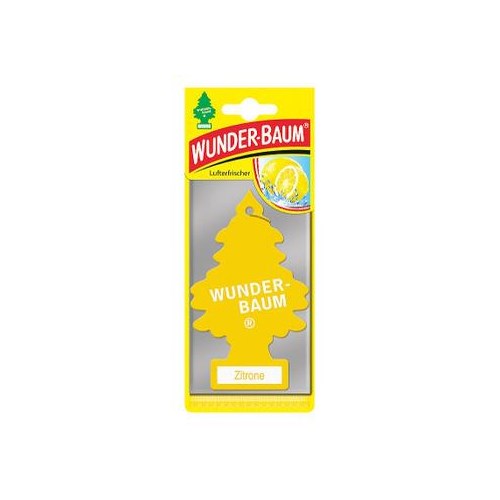 WUNDER-BAUM papierowy zapach samochodowy w kształcie choinki. Utrzymujący się do ośmiu tygodni aromat. Skutecznie neutralizujący nieprzyjemne zapachy np. dymu tytoniowego, wilgoci. Zapach "Cytryna".