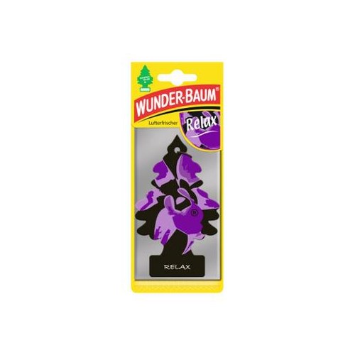 WUNDER-BAUM papierowy zapach samochodowy w kształcie choinki. Utrzymujący się do ośmiu tygodni aromat. Skutecznie neutralizujący nieprzyjemne zapachy np. dymu tytoniowego, wilgoci. Lekka i odprężająca kompozycja zapachowa "Relaks"