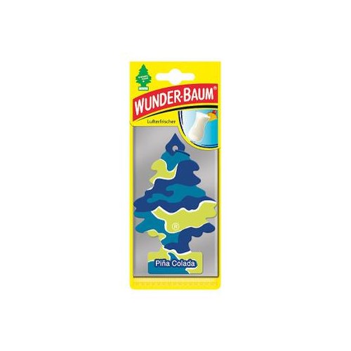 WUNDER-BAUM papierowy zapach samochodowy w kształcie choinki. Utrzymujący się do ośmiu tygodni aromat. Skutecznie neutralizujący nieprzyjemne zapachy np. dymu tytoniowego, wilgoci. Pin?a Colada - zapach wakacji wypełniony karaibskim letnim koktajlem.
