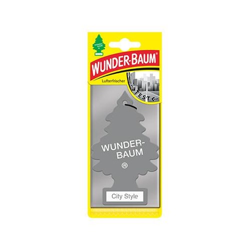 WUNDER-BAUM papierowy zapach samochodowy w kształcie choinki. Utrzymujący się do ośmiu tygodni aromat. Skutecznie neutralizujący nieprzyjemne zapachy np. dymu tytoniowego, wilgoci. "City Style" to wyrazisty, męski zapach z nutą drzewa sandałowego. Prawdziwa miejska elegancja.