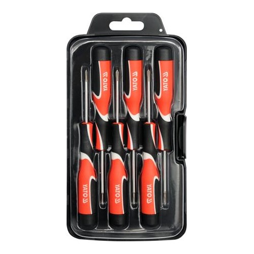 Zestaw wkrętaków precyzyjnych. Grot utwardzany, magnetyczny /ułatwia pracę z małymi wkrętami /. Rękojeść wykonana w technologi trój komponentowej, zakończona obrotową nakładką ułatwiająca i przyśpieszającą wkręcanie.