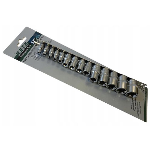Zestaw nasadek E-Torx 1/4", 3/8", 1/2" 14szt. (H2202) firmy HONITON to doskonały wybór dla każdego, kto potrzebuje niezawodnych i wszechstronnych narzędzi. Dzięki wysokiej jakości materiałom i przemyślanej organizacji na metalowej szynie, zestaw ten sprosta wymaganiom zarówno profesjonalistów, jak i entuzjastów majsterkowania.