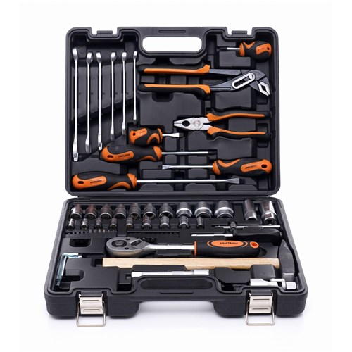 Cały zestaw składa się z 66 różnych elementów, które zapewnią odpowiedni dobór narzędzia do potrzeb. Narzędzia wykonane są z utwardzanej stali chromowo-wanadowej (CrV) przeznaczonej dla narzędzi warsztatowych. Chrom gwarantuje odporność stali na korozję, utlenianie, ścieranie i dużą wytrzymałość na wysokie temperatury. Dodatek wanadu hamuje wzrost ziaren podczas obróbki, zwiększając jednocześnie ciągliwość zarówno postaci hartowanej, jak i odpuszczonej.