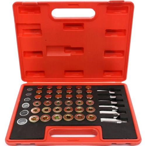 Zestaw gwintowników i korków o symbolu KD10512 do prostej naprawy gwintów korków spustowych miski olejowej, skrzyni biegów i innych. Pasuje do większości gwintów popularnie używanych w samochodach osobowych i lekkich samochodach ciężarowych. Zestaw przeznaczony do warsztatów samochodowych, naprawczych i serwisów.