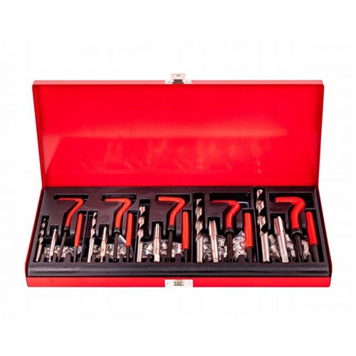 Zestaw służy do naprawy połączeń gwintowanych każdego rodzaju w większości materiałów. Dzięki dużej ilości elementów zestaw jest bardzo uniwersalny.