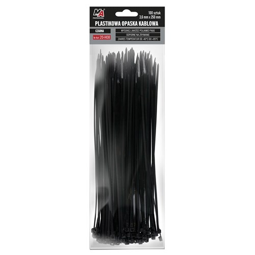 Wykonane z wysokiej jakosci poliamidu PA66. Certyfikat UL. Zachowuja swoje własciwosci w duzym zakresie temperatur od -40oC do +85oC. Klasa palnosci 94V-2. Szerokie spektrum zastosowan np. spinanie i wiazanie wiazek przewodów, elementów montazowych. Produkt jednorazowego uzycia. Dostepny w róznych rozmiarach.