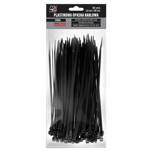 Wykonane z wysokiej jakosci poliamidu PA66. Certyfikat UL. Zachowuja swoje własciwosci w duzym zakresie temperatur od -40oC do +85oC. Klasa palnosci 94V-2. Szerokie spektrum zastosowan np. spinanie i wiazanie wiazek przewodów, elementów montazowych. Produkt jednorazowego uzycia. Dostepny w róznych rozmiarach.