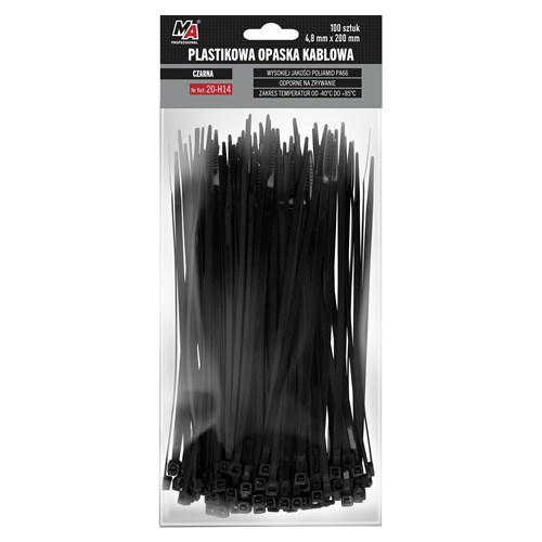 Wykonane z wysokiej jakosci poliamidu PA66. Certyfikat UL. Zachowuja swoje własciwosci w duzym zakresie temperatur od -40oC do +85oC. Klasa palnosci 94V-2. Szerokie spektrum zastosowan np. spinanie i wiazanie wiazek przewodów, elementów montazowych. Produkt jednorazowego uzycia. Dostepny w róznych rozmiarach.