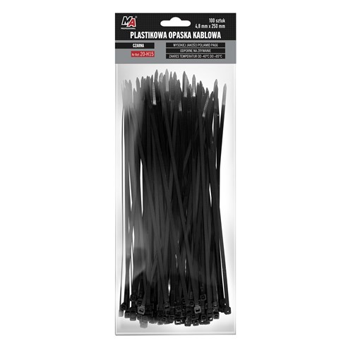 Wykonane z wysokiej jakosci poliamidu PA66. Certyfikat UL. Zachowuja swoje własciwosci w duzym zakresie temperatur od -40oC do +85oC. Klasa palnosci 94V-2. Szerokie spektrum zastosowan np. spinanie i wiazanie wiazek przewodów, elementów montazowych. Produkt jednorazowego uzycia. Dostepny w róznych rozmiarach.