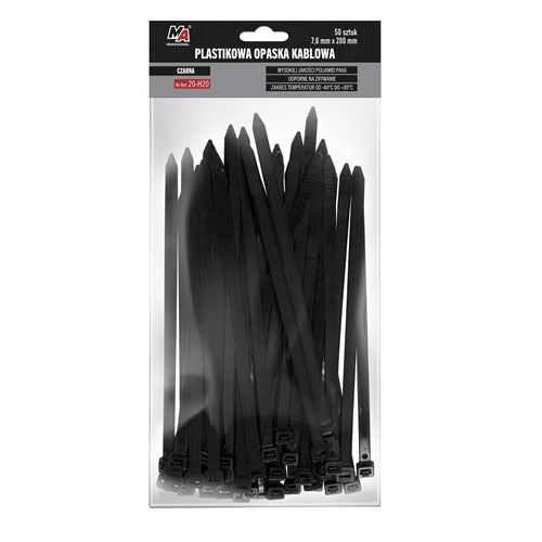 Wykonane z wysokiej jakosci poliamidu PA66. Certyfikat UL. Zachowuja swoje własciwosci w duzym zakresie temperatur od -40oC do +85oC. Klasa palnosci 94V-2. Szerokie spektrum zastosowan np. spinanie i wiazanie wiazek przewodów, elementów montazowych. Produkt jednorazowego uzycia. Dostepny w róznych rozmiarach.