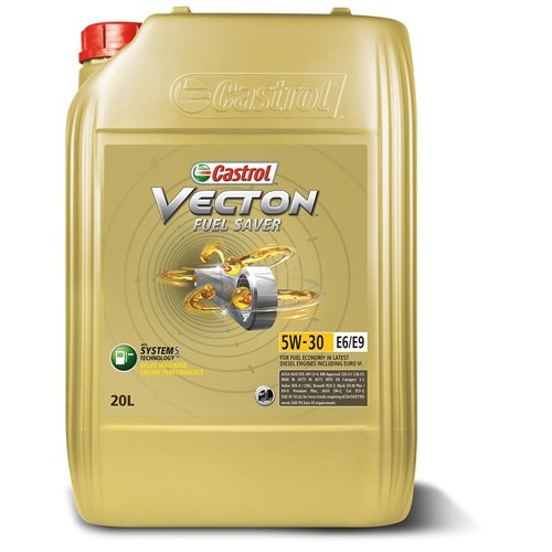 Castrol VECTON FuelSaver5W-30 E6/E9 to zaawansowany, w pełni syntetyczny olej do silników diesla w pojazdach typu TIR. Przeznaczony jest do wysokoprężnych jednostek napędowych spełniających wymagania emisji spalin od Euro I do Euro VI. Jest on kompatybilny z silnikami wyposażonymi w filtr cząstek stałych oraz układy EGR i SCRNOx. Niska zawartość siarki, popiołów i fosforów nie zatyka systemów oczyszczania spalin. Dzięki innowacyjnej formule produkty marki CastrolVecton zaliczane są do grupy olejów o wydłużonej żywotności. Olej silnikowy Castrol Vecton 5W30 o pojemności 20L pozwala skutecznie obniżyć zużycie paliwa. Optymalnie smaruje i chroni silnik przed zatarciem, który pracuje w zróżnicowanych warunkach.