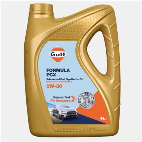 to najbardziej zaawansowany olej do silników samochodów osobowych skomponowany z syntetycznych olejów bazowych oraz dodatków odzwierciedlających aktualny stan wiedzy technologicznej z myślą o zapewnieniu oszczędności paliwa oraz wydłużeniu żywotności a także zachowaniu sprawności układów zmniejszających emisje. Olej Gulf Formula PCX 0W-30 jest całkowicie kompatybilny z filtrem cząstek stałych (DPF) oraz katalizatorem 3-funkcyjnym do silników benzynowych (TWC) a także jest specjalnie opracowany aby przekroczyć wymagania w zakresie wymian oleju firmy PSA Peugeot Citroën oraz innych OEM, wymagających olejów typu ACEA C2.