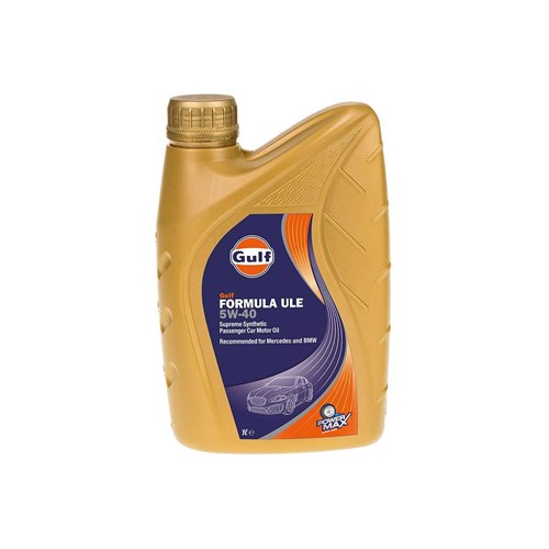 Olej silnikowy Gulf Formula ULE 5W 40 to zaawansowany technologicznie, syntetyczny, niskoemisyjny olej silnikowy do samochodów osobowych, które wymagają olejów o średniej zawartości popiołów siarczanowych (MID SAPS). Został specjalnie zaprojektowany, aby wydłużyć żywotność układów oczyszczania spalin używanych w modelach ostatnich generacji samochodów zarówno benzynowych jak i diesla.