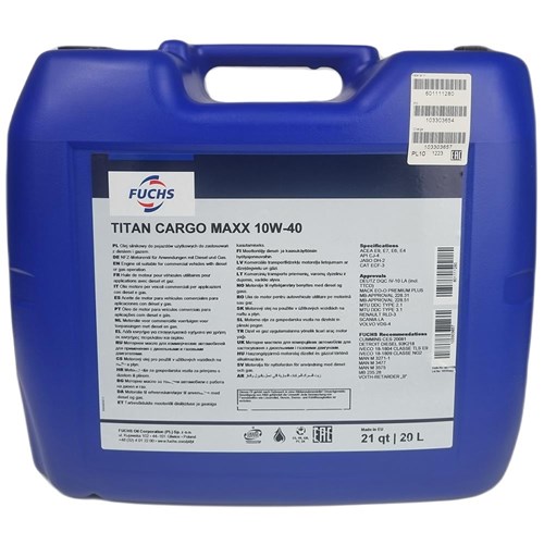 "10W-40 Titan Cargo Maxx 20L" to wysokiej jakości olej silnikowy stworzony specjalnie z myślą o silnikach ciężarówek i pojazdów użytkowych. Jego zaawansowana formuła zapewnia optymalne smarowanie oraz skuteczną ochronę silnika w różnorodnych warunkach eksploatacji. Dzięki zastosowaniu najnowszych technologii, ten olej doskonale radzi sobie zarówno z wysokimi obciążeniami, jak i ekstremalnymi temperaturami, co przekłada się na wydłużoną żywotność silnika oraz zmniejszoną ilość zużywanych części. Dodatkowo, jego specjalna kompozycja pomaga w oszczędzaniu paliwa poprzez zmniejszenie tarcia i minimalizację oporów wewnętrznych silnika.