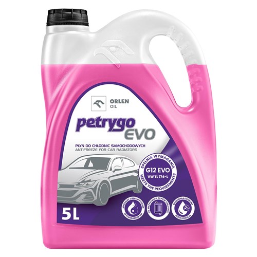 Petrygo EVO to najnowszej generacji płyn chłodniczy produkowany na bazie wysokiej jakości glikolu etylenowego oraz innowacyjnym pakiecie dodatków uszlachetniających na bazie soli kwasów organicznych oraz związków nieorganicznych Petrygo Evo spełnia wymagania normy VW TL 774-L (G 12 EVO), jest rekomendowany do chłodzenia silników pojazdów grupy VW min.: Volkswagen, Audi, Skoda, Seat. Mieszalny ze wszystkimi płynami w standardzie Grupy VW m.in. G11, G12, G12+, G12++, G13.