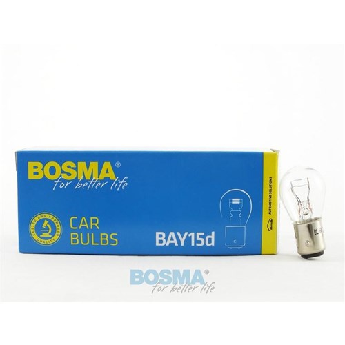 Wysokiej jakości żarówka do świateł stopu i pozycji P21/5W marki Bosma. Dedykowana do pojazdów z instalacją elektryczną 6 Volt.