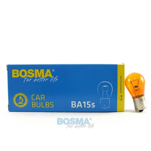 Żarówka motoryzacyjna BOSMA o numerze 12V 21W BA15s to solidna i jasna żarówka przeznaczona do zastosowań w pojazdach. Jej kształt 25x47mm i kolor pomarańczowy zapewniają dobrą widoczność i bezpieczeństwo na drodze, szczególnie w przypadku kierunkowskazów. Łatwa w montażu i trwała, jest niezawodnym źródłem światła w motoryzacji.